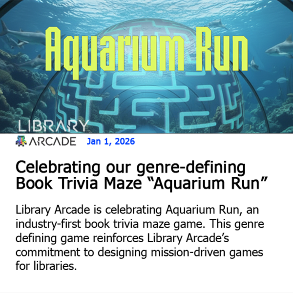 Library Arcade publishes games that allow readers to engage their favorite books in new and interesting ways. Our newest gaming platform is called Book Trivia Maze. The platform features immersive mazes that require players to use strategy, gaming skills and book trivia knowledge to advance. Players can select from hundreds for books to run the mazes. This is a new way of gaming in libraries.